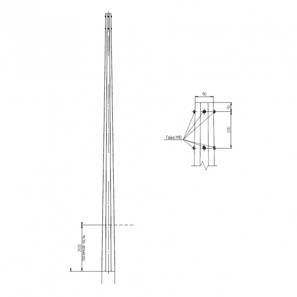 • 6 – высота опоры над уровнем земли в метрах;