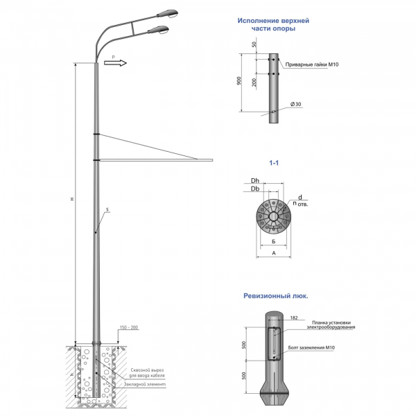 Опора ТФГ-700-9,0-02-ц — опора трубчатая фланцевая применяется для установки оборудования уличного освещения и одновременной прокладки линий электропередач городского наземного электротранспорта, размещения рекламных и информационных щитов.